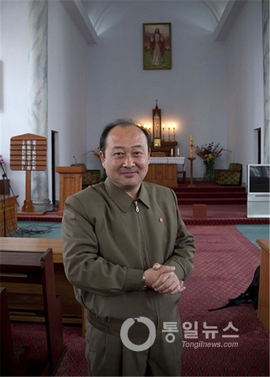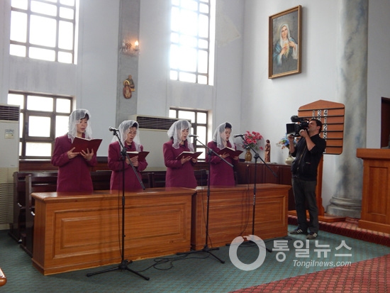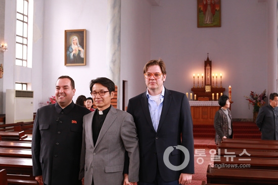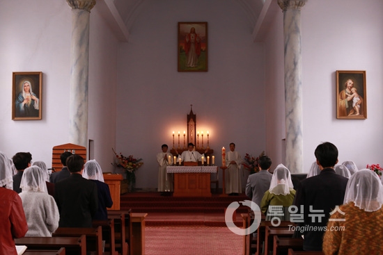 foto conmemorativa de la misa conjunta Norte-Sur celebrada en 2015 en la Catedral de Jangchung, Pyongyang, la primera en 7 años (agencia Yonhap)